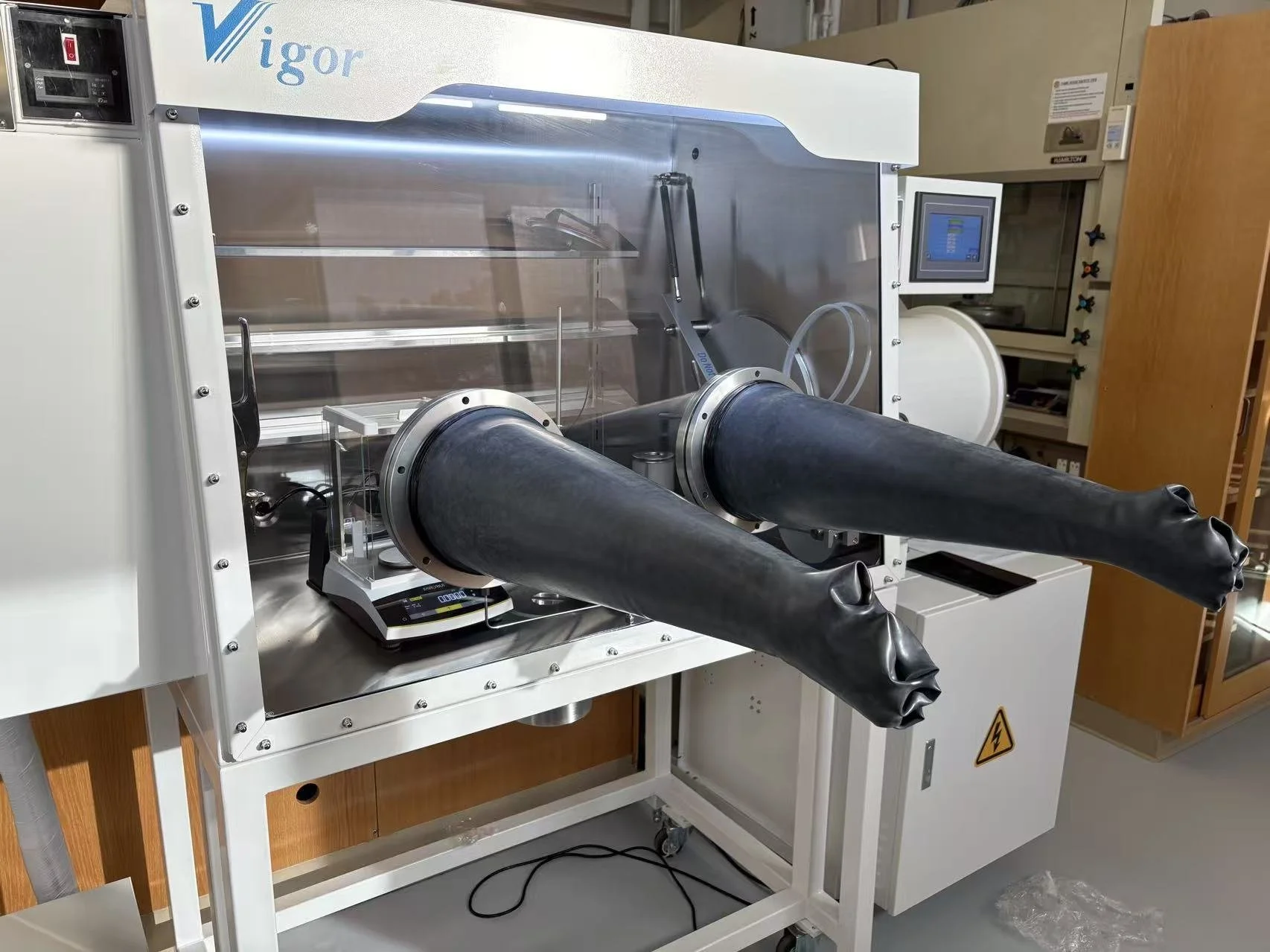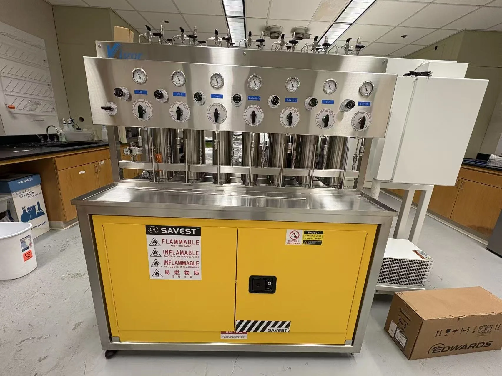 We set up our glove boxes and solvent purification systems!